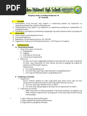 Ikalawang Markahan Module II Mga Isyung Pang Ekonomiya Aralin 3 Migrasyon 3. Araling panlipunan Other contents. GRADE 7 - 10 ARALING PANLIPUNAN AP DOWNLOADABLE DAILY LESSON LOGSPLANS LEARNERS MATERIALS AND CURRICULUM GUIDES.