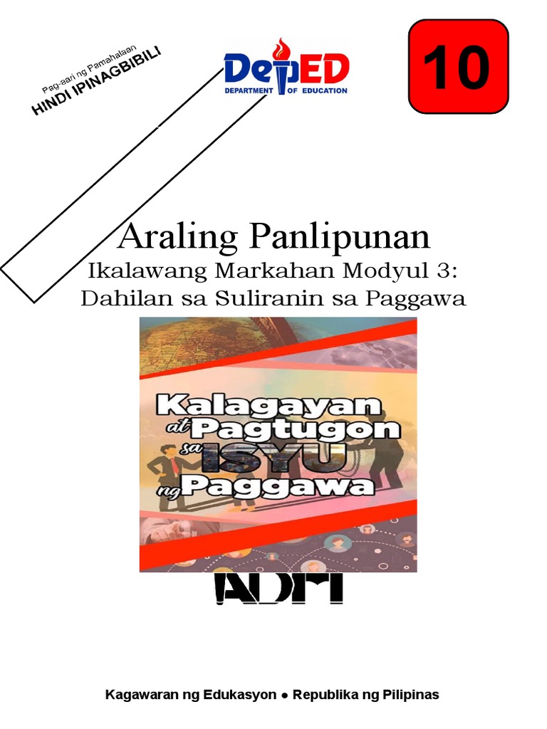 ARALING PANLIPUNAN 10- 2ND QUARTER WEEK 4 ARALIN 2. MGA ISYU SA PAGGAWA Modyul 2 Pangalan. Hindi maaaring magkaroon ng karapatang-sipi sa anomang akda ang Pamahalaan ng Pilipinas.